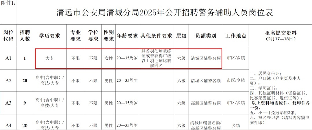 此前2月6日,清城公安分局发布了2025年公开招聘警务辅助人员的公告,该招聘根据《清城区公安机关警务辅助人员管理暂行办法》,依法面向社会公开招聘警务辅助人员数名。